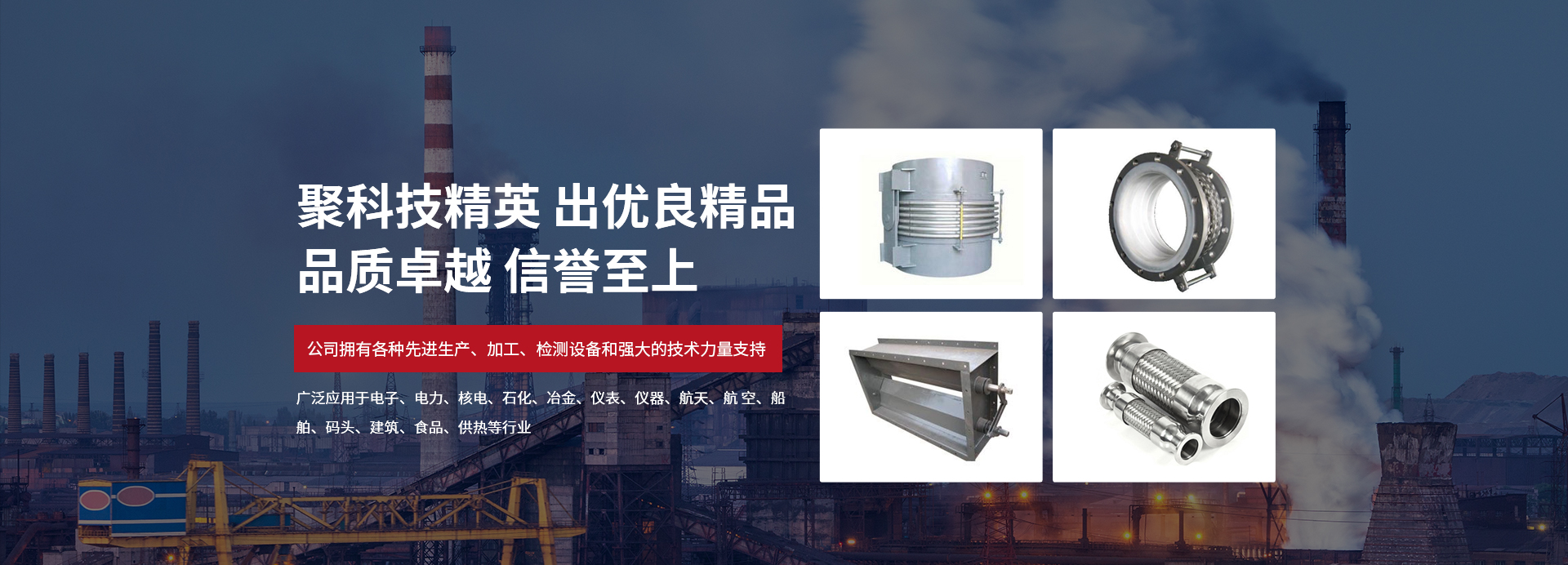 公司專業從事設計、生產金屬膨脹節、不銹鋼膨脹節、高溫膨脹節的廠家。工廠擁有各種先進生產、加工、檢測設備強大的技術力量。